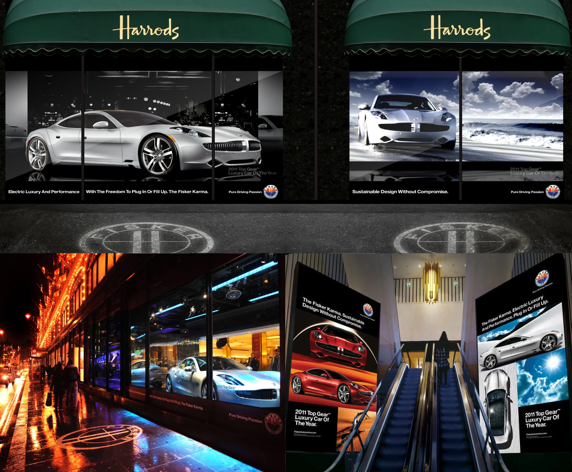 Created and designed all elements used in Harrods, London sponsored takeover. For 30 days, the Karma was featured throughout the shopping center. Videos, digital media, printed ads/ billboards, lighting and projections, and vehicles were showcased on site.